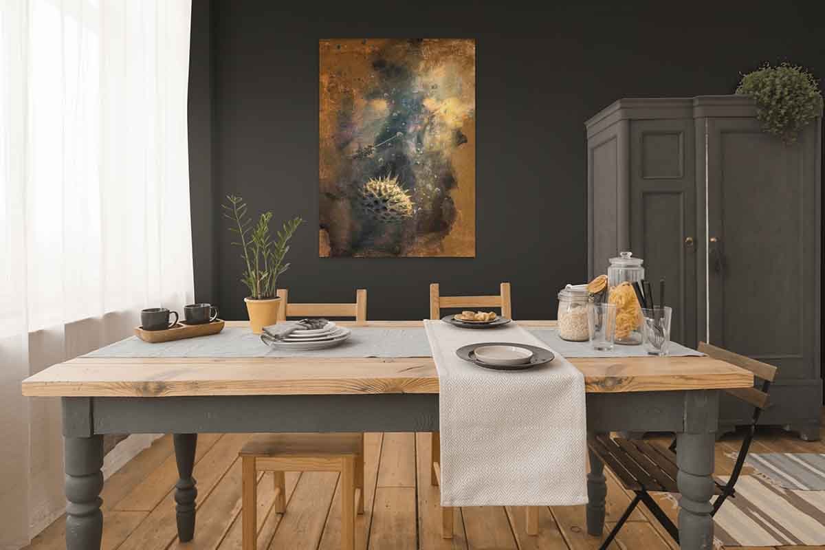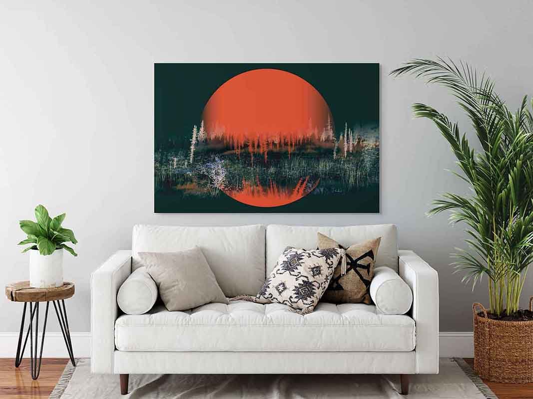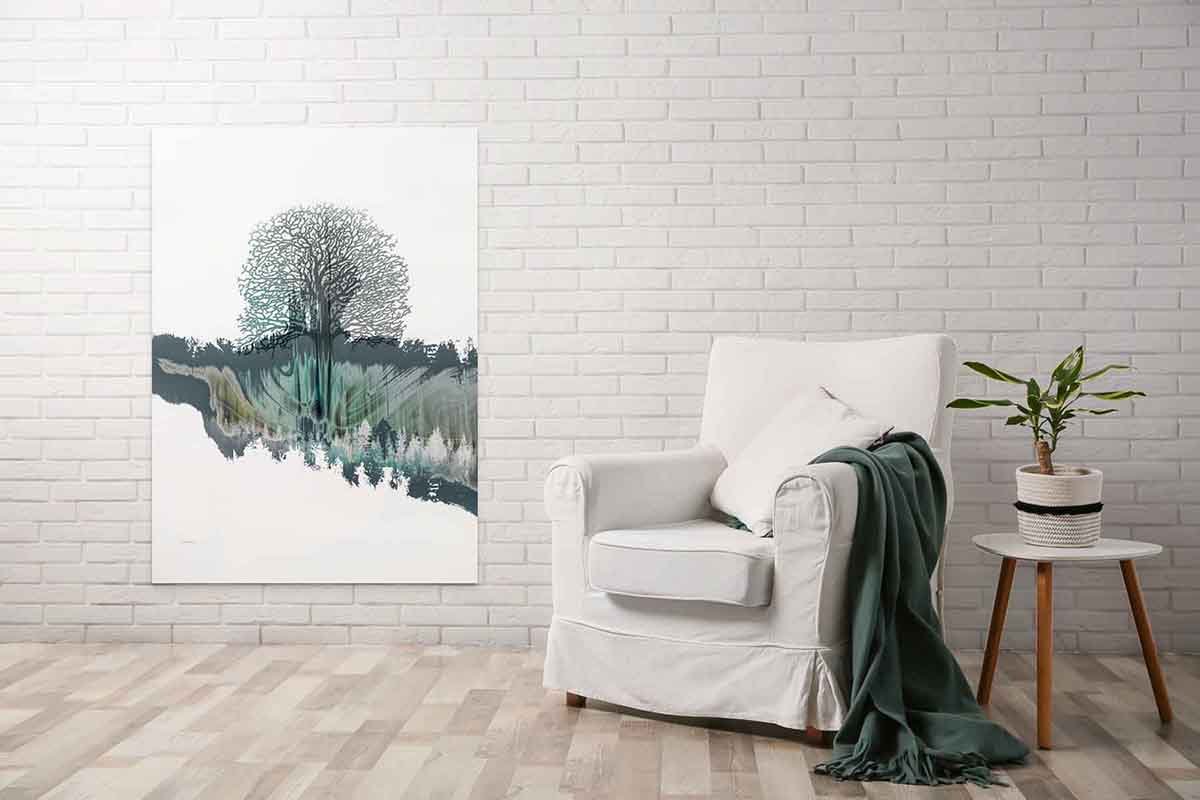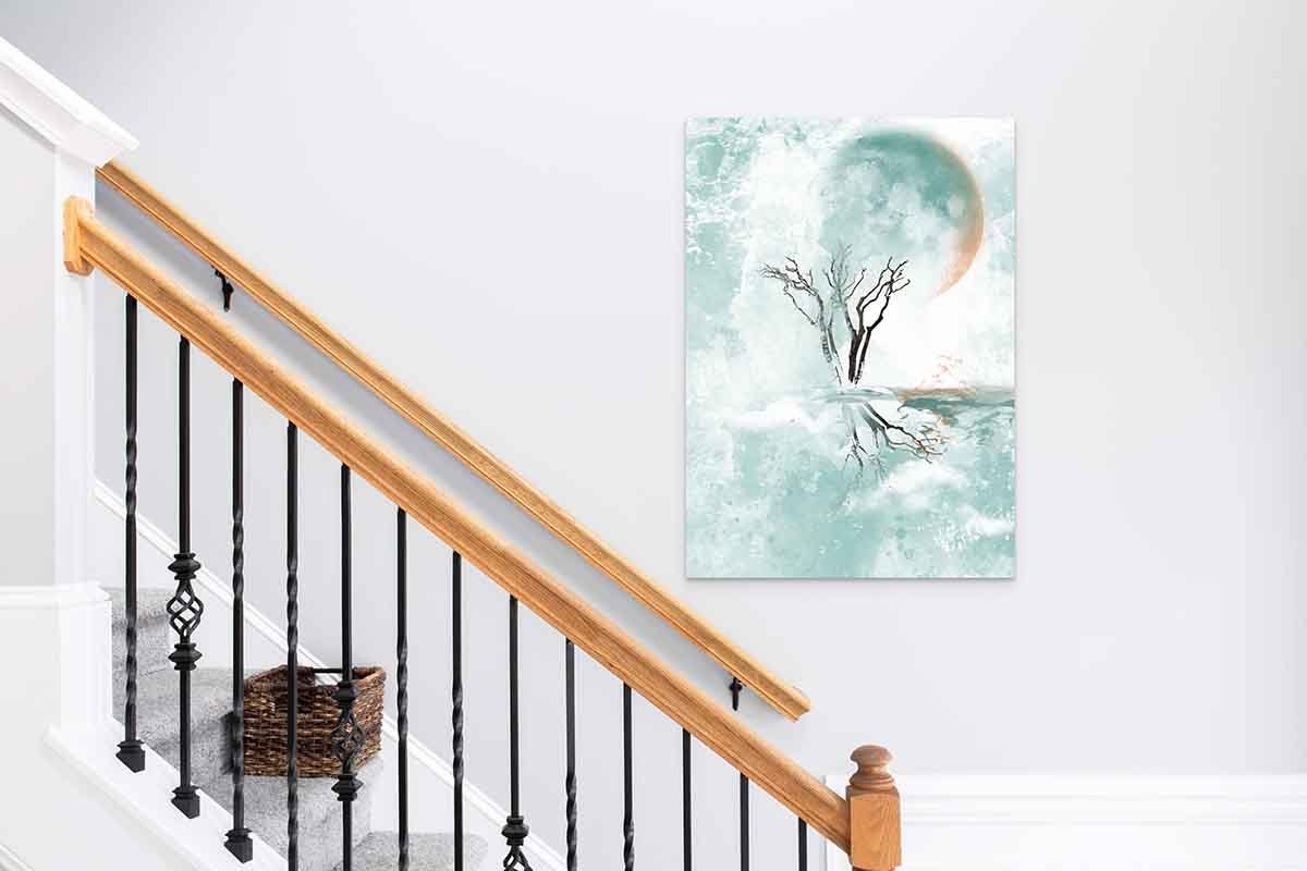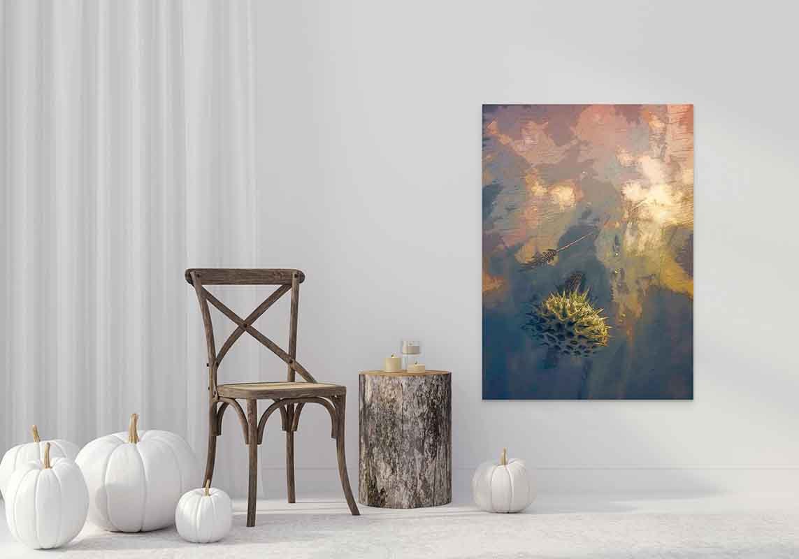 Hang this artwork in your space, and watch as it becomes a focal point, a conversation starter that transcends traditional notions of wall decor. The juxtaposition of the organic elements of nature with the abstract forms creates a harmonious balance, allowing you to experience the calming influence of the outdoors within the confines of your home.